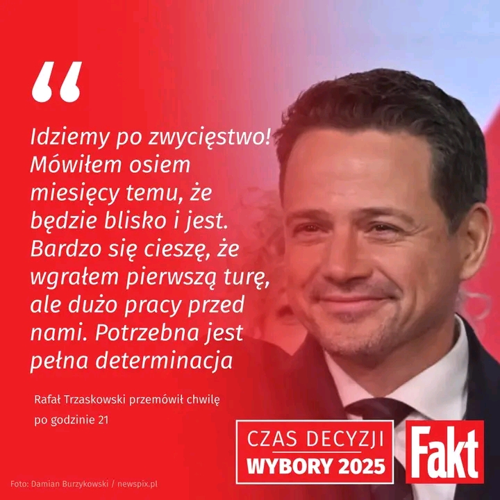 Pierwsze słowa Rafała Trzaskowskiego po ogłoszeniu sondaży brzmiały: „To dopiero początek. Dziękuję każdemu z was za odwagę, za wiarę, za głos. Polska właśnie się budzi.” Z jego tonu przebijało wzruszenie, a łamiący się głos zdradzał, że nie była to rutynowa wypowiedź polityka, ale prawdziwe, emocjonalne wyznanie człowieka głęboko zaangażowanego w sprawy publiczne.
