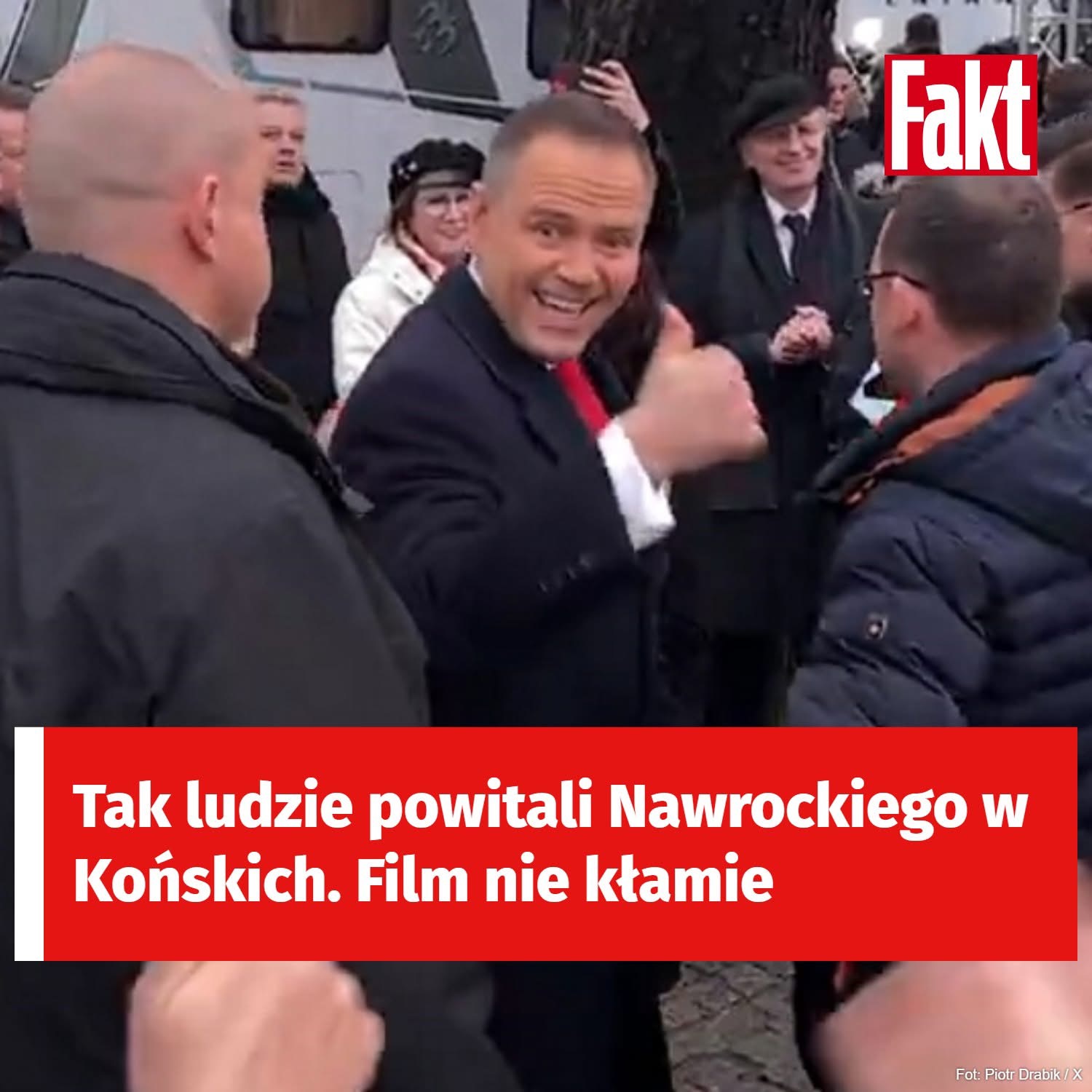 Tak właśnie ludzie powitali Nawrockiego w Końskich. Bez scenariusza, bez podziału ról, bez fałszu. Film nie kłamie. I to właśnie jego największa siła.